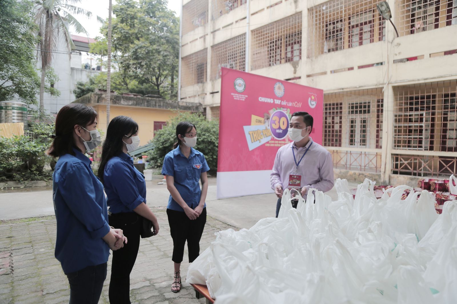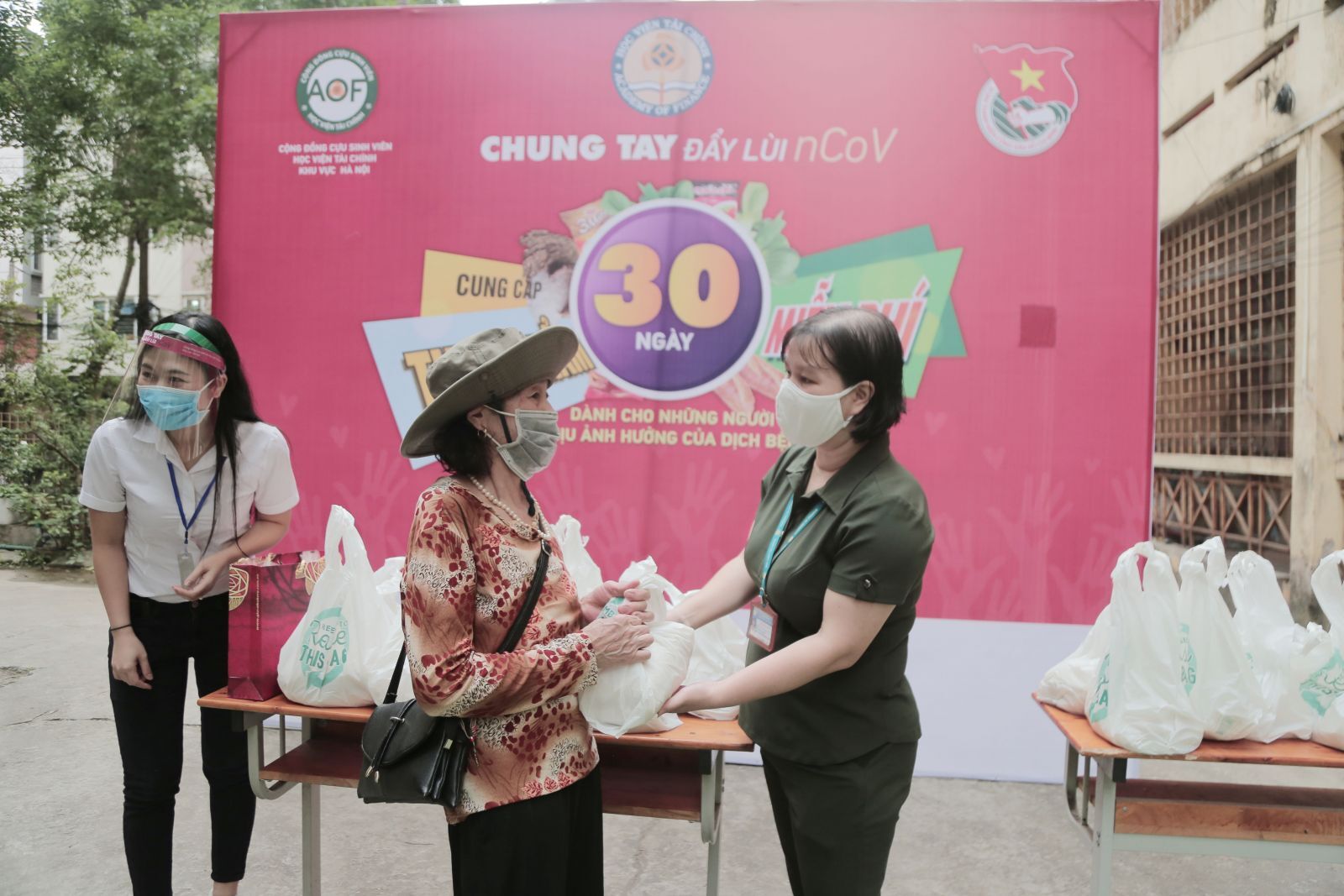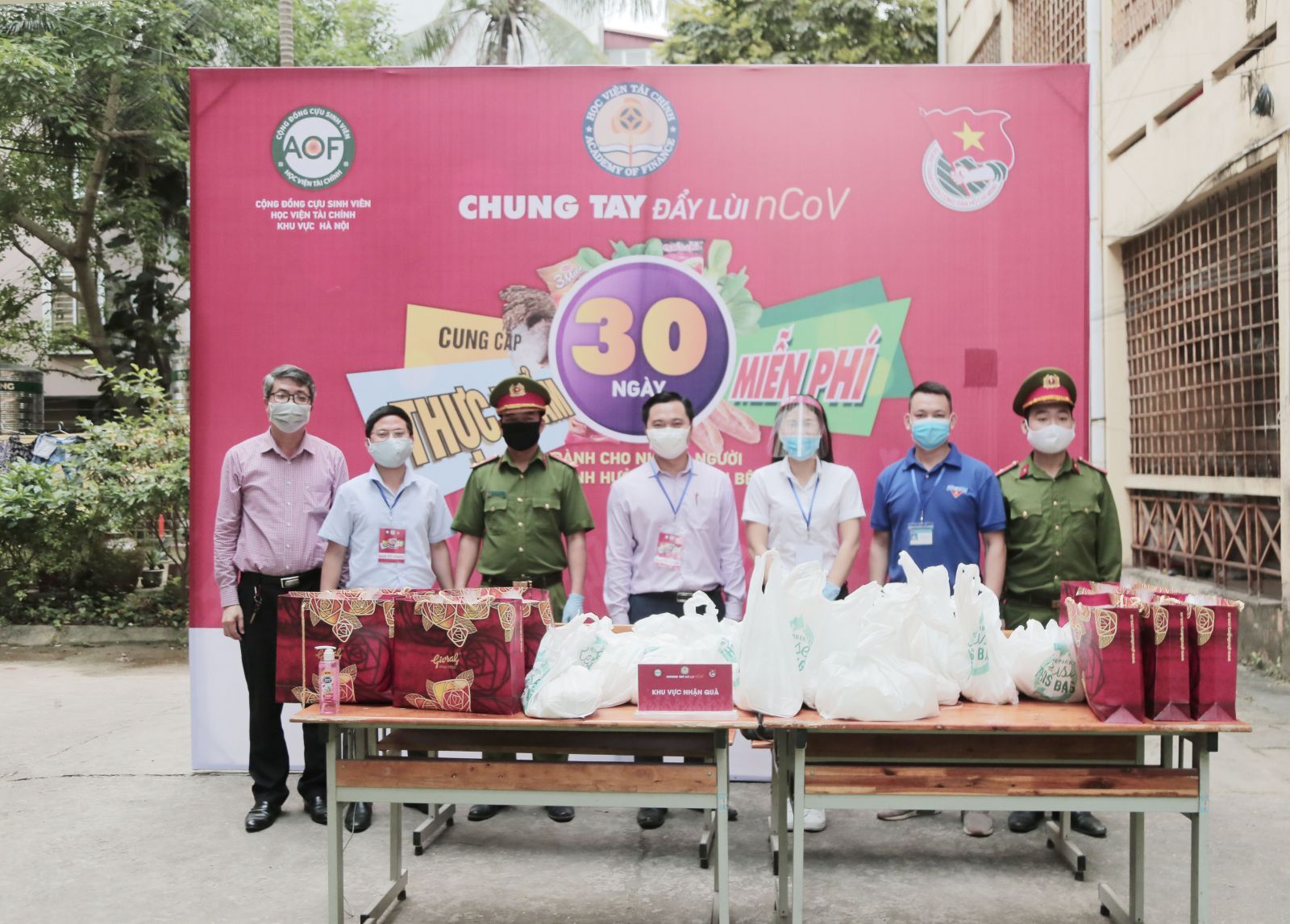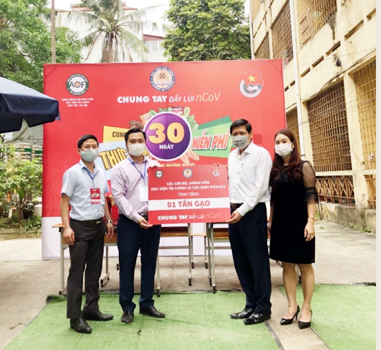 Ngay trong sáng ngày 20/4, Đoàn Thanh niên Học viện Tài chính phối hợp với cựu sinh viên Học viện khu vực Hà Nội triển khai chương trình "Chung tay đẩy lùi nCov" tặng 220 suất quà mỗi ngày trong 30 ngày cho những gia đình gặp khó khăn do dịch bệnh. Hai điểm trao quà được thực hiện là tại sân KTX B7 Học viện Tài chính 58 Lê Văn Hiến, Đức Thắng, Bắc Từ Liêm và tại Trường Tiểu học Vĩnh Hưng, 27/235 đường Lĩnh Nam, phường Vĩnh Hưng, quận Hoàng Mai, Hà Nội. Chương trình sẽ kéo dài đến hết ngày 19/5/2020. Đến nay, Chương trình đã đã huy động được hơn 1 tỉ đồng gồm quà và tiền mặt. Dự kiến việc trao quà có thể thể kéo dài vì Chương trình vẫn tiếp tục có thêm sự hỗ trợ về quà hay tài chính. Cũng ngay trong buổi sáng 20/4, cựu sinh viên Học viện Tài chính hiện là cán bộ, giảng viên đã trao tặng 01 tấn gạo cho Chương trình.
