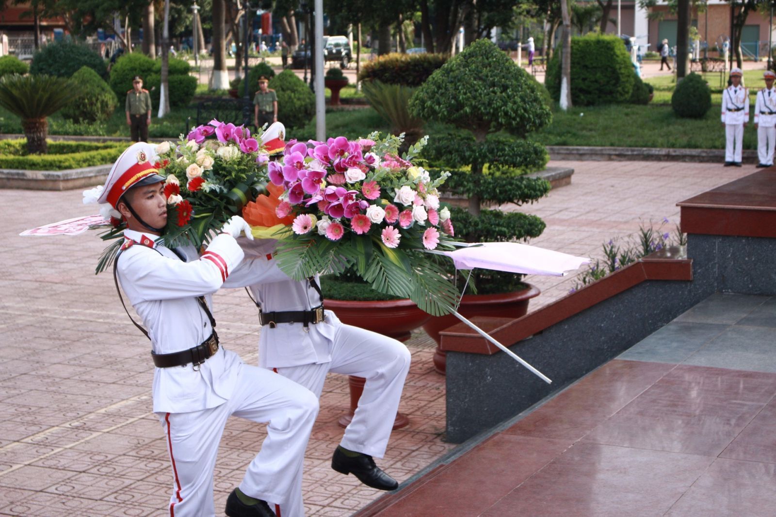 Ban tổ chức Hội diễn nghệ thuật quần chúng đã đến dâng hoa, viếng tượng đài Chủ tịch Hồ Chí Minh và các Anh hùng liệt sỹ tại Đắk Lắk