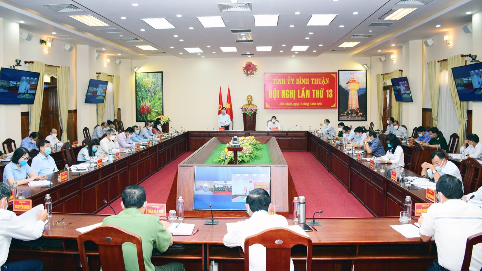 Sáng 12/7, Ban Thường vụ Tỉnh ủy Bình Thuận tổ chức Hội nghị Tỉnh ủy (khóa XIV) lần thứ XIII Bằng hình thức trực tuyến với 3 điểm cầu trong tỉnh để đánh giá tình hình kinh tế - xã hội, quốc phòng - an ninh, công tác xây dựng Đảng, công tác dân vận 6 tháng đầu năm và nhiệm vụ trọng tâm 6 tháng cuối năm 2021.