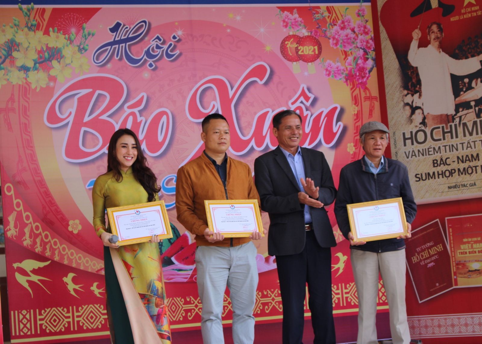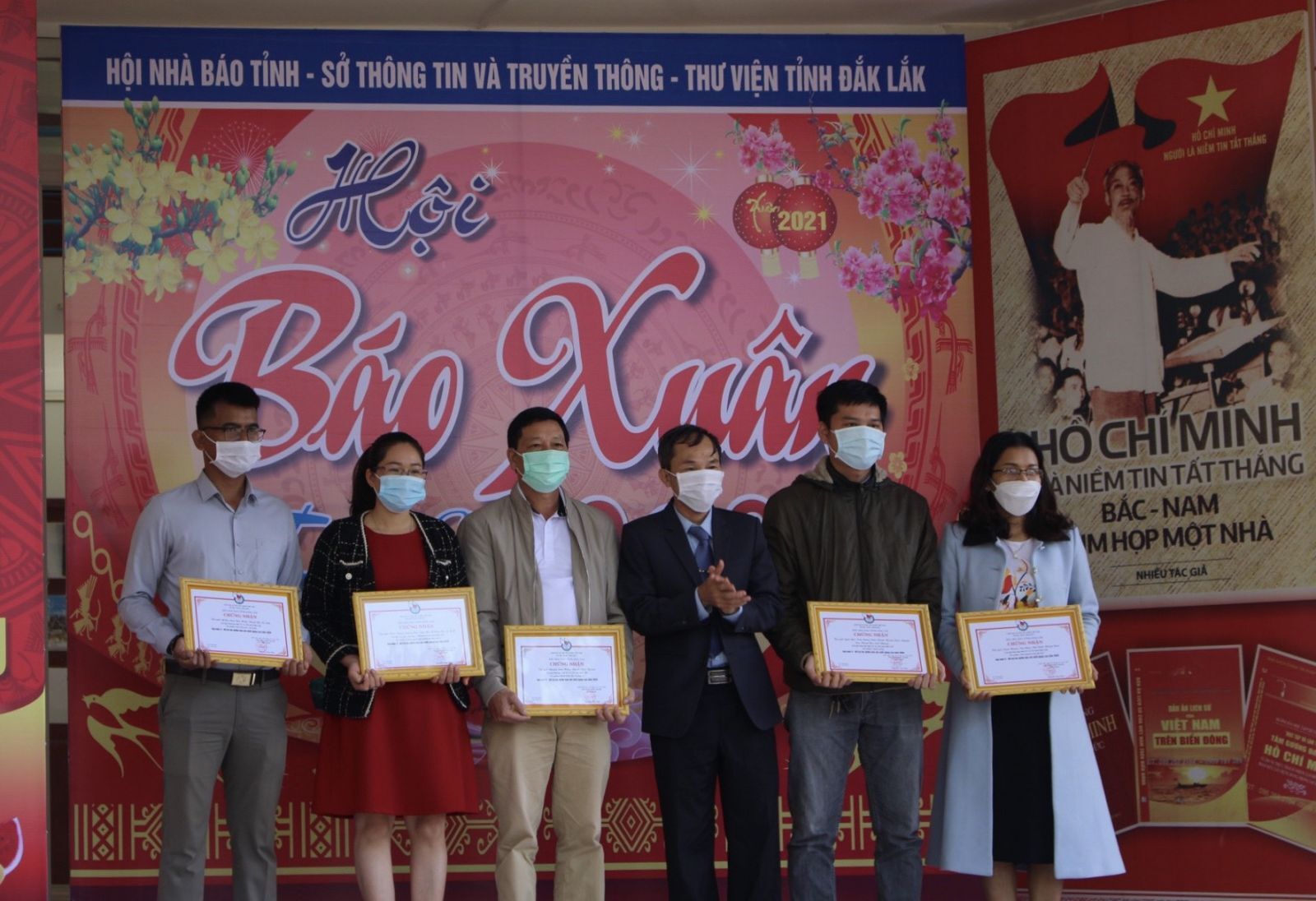 Đồng chí Nguyễn Cảnh, Phó Trưởng Ban Tuyên giáo Tỉnh ủy tặng giấy khen cho các tập thể cá nhân có thành tích trong hoạt động báo chí.