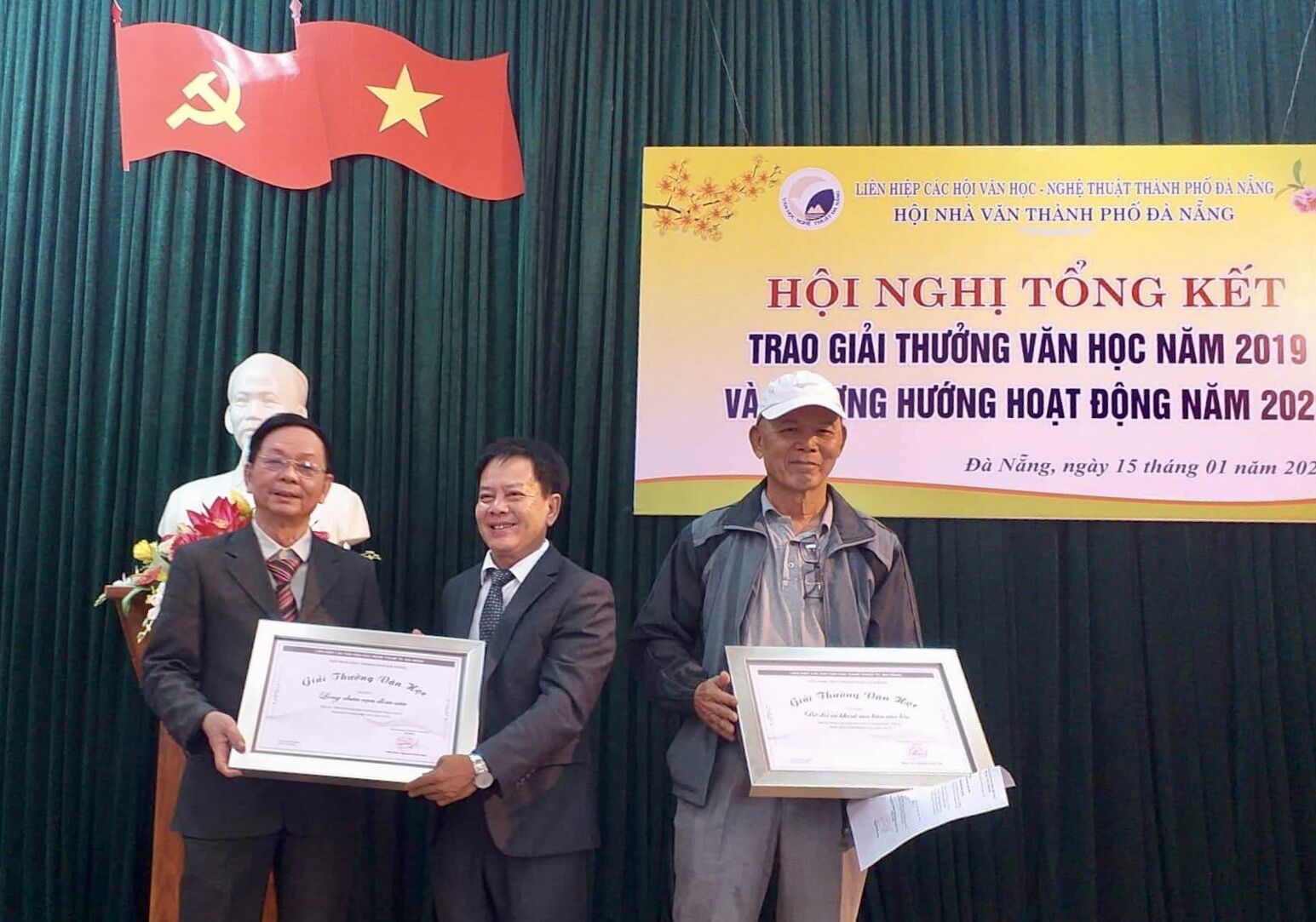 Chủ tịch Hội Nhà văn Đà Nẵng Nguyễn Kim Huy trao Giải thưởng cho 2 tác giả