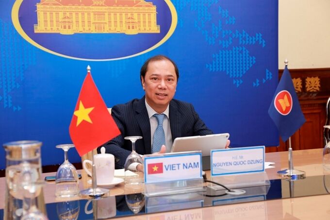 VNHN - Sáng 17-3, Thứ trưởng Ngoại giao Nguyễn Quốc Dũng, Trưởng đoàn quan chức cấp cao (SOM) ASEAN của Việt Nam, cùng các Trưởng SOM ASEAN và Thứ trưởng Ngoại giao Ô-xtrây-li-a tham dự Diễn đàn ASEAN - Ô-xtrây-li-a lần thứ 33 theo hình thức trực tuyến.