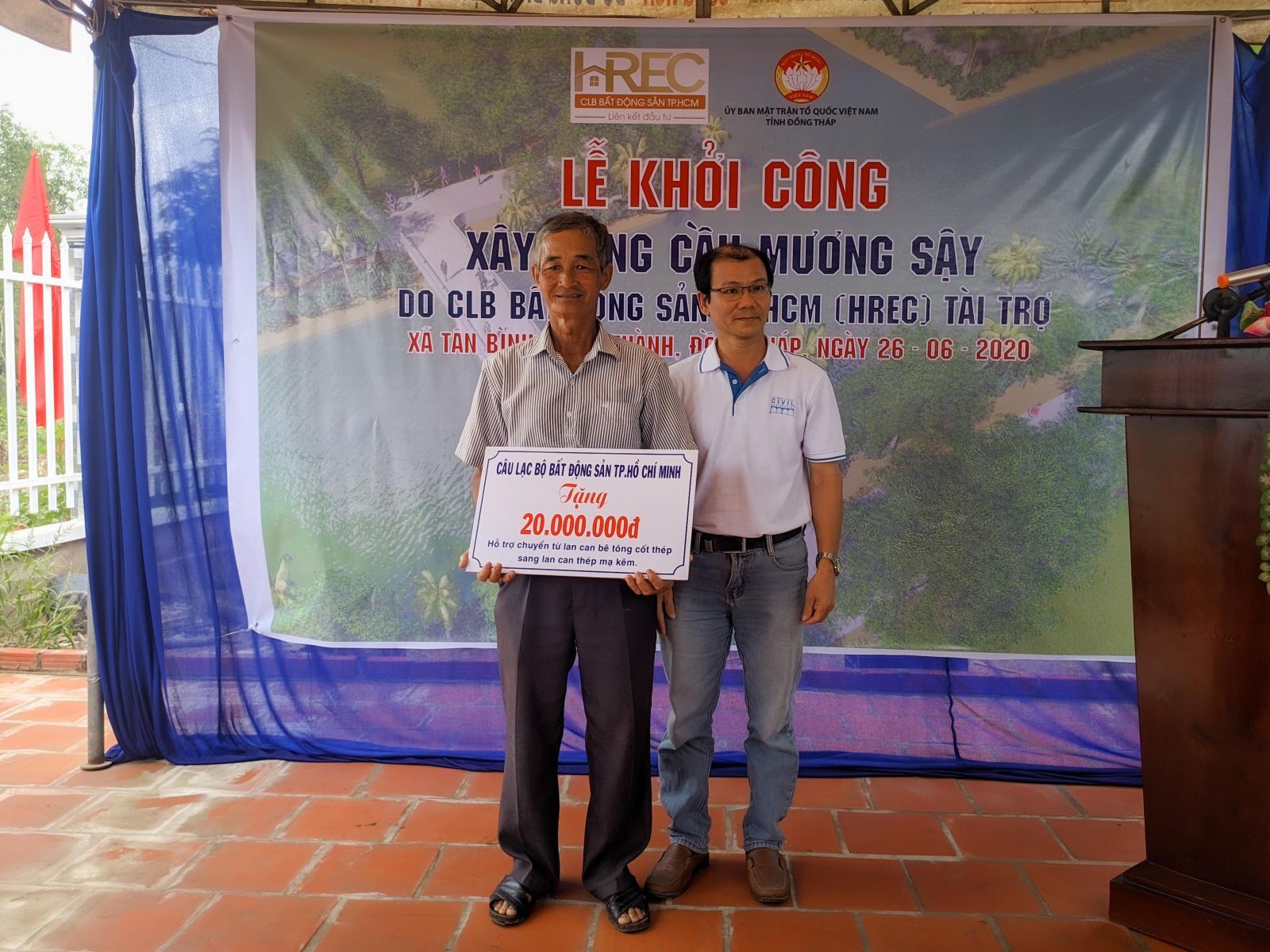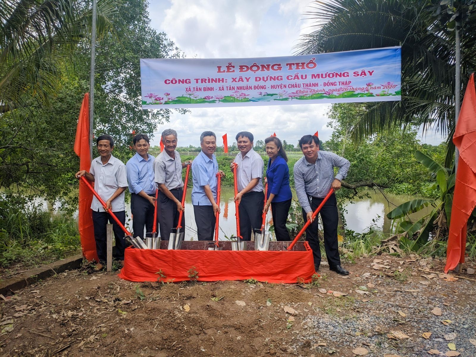 VNHN - Vừa qua, ngày 26/06/2020, Đoàn từ thiện xây cầu CLB Bất Động Sản TP.HCM (HREC) đã phối hợp cùng lãnh đạo địa phương huyện Châu Thành, tỉnh Đồng Tháp tổ chức Lễ khởi công cầu Mương Sậy kết nối hai xã Tân Bình và Tân Nhuận Đông.