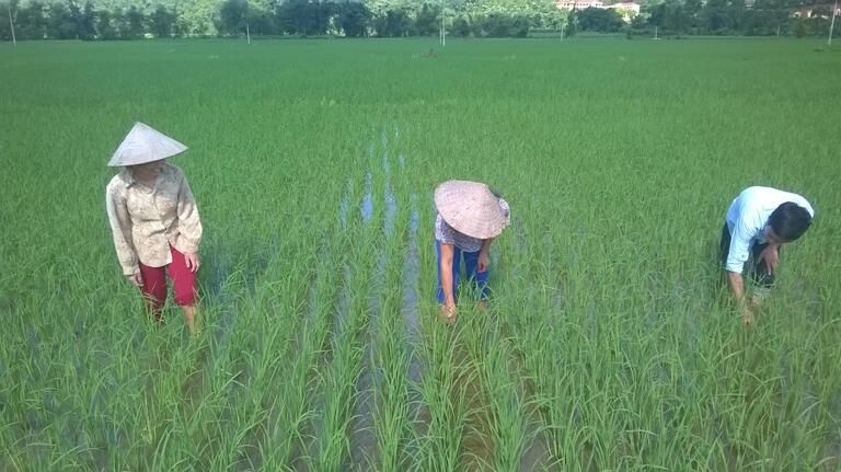 Người dân huyện Bảo Yên chăm sóc lúa mùa.