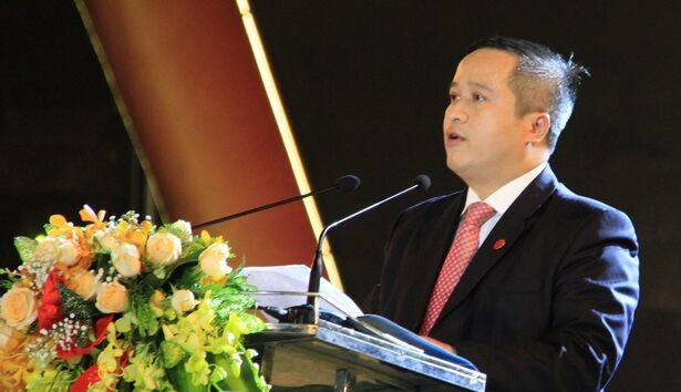 Chủ tịch UBND tỉnh Trần Tiến Hưng chúc mừng những thành tựu huyện Nghi Xuân đạt được trong quá hình thành và phát triển
