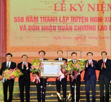 Thay mặt lãnh đạo Đảng, nhà nước, Phó Thủ tướng Chính phủ Vương Đình Huệ đã trao tặng Huân chương Lao động hạng Nhì của Chủ tịch nước cho nhân dân và cán bộ huyện Nghi Xuân.