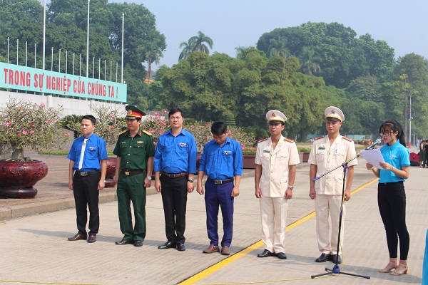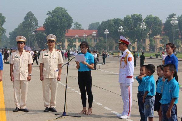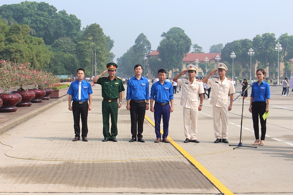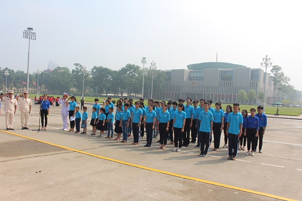 Ban tổ chức và 52 Gương mặt trẻ tiêu biểu huyện Sóc Sơn làm lễ chào cờ tại Lăng Chủ Tịch Hồ Chí Minh.