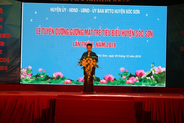 Phát biểu chỉ đạo tại Lễ tuyên dương, Phó Bí thư Thường trực Huyện ủy Sóc Sơn Phạm Quang Thanh biểu dương thành tích của Đoàn thanh niên, tuổi trẻ huyện Sóc Sơn và đặc biệt là 52 gương mặt trẻ tiêu biểu. Đồng chí bày tỏ mong muốn, các gương mặt trẻ tiêu biểu cần không ngừng học tập, nâng cao trình độ, kiến thức, lao động sáng tạo, sống có lý tưởng, hoài bão, đi đầu trong tiếp cận và ứng dụng các thành tựu của cuộc cách mạng khoa học công nghệ lần thứ tư, cống hiến khả năng, trí tuệ, góp phần xây dựng quê hương Sóc Sơn, Thủ đô và đất nước tiến bước vững chắc trên con đường hội nhập. Tuổi trẻ Sóc Sơn hãy luôn đi đầu trong thực hiện các nhiệm vụ mới, nhiệm vụ khó để ngày càng xuất hiện nhiều gương mặt trẻ tiêu biểu được tôn vinh và tạo thành phong trào, khí thế thi đua sôi nổi trong tuổi trẻ toàn Huyện, từ đó lan tỏa sâu rộng trong các tầng lớp Nhân dân.