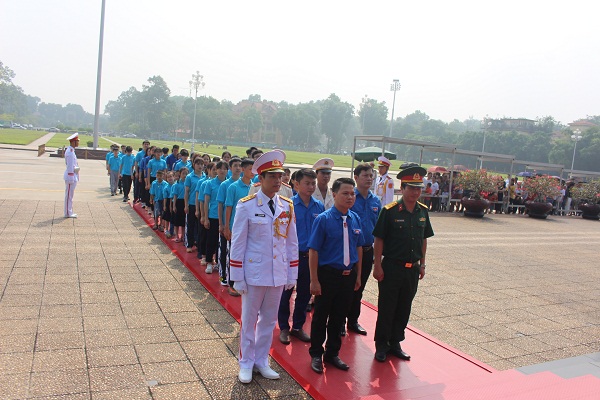 Đoàn đại biểu Gương mặt trẻ tiêu biểu huyện Sóc Sơn vào lăng viếng Bác.
