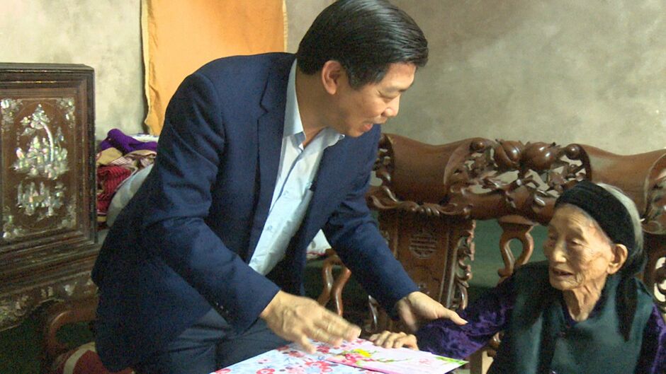 Đến thăm và trao tặng quà tết 3 cụ tròn 100 tuổi tại xã Dũng Tiến, đồng chí Kiều Xuân Huy - Chủ tịch UBND huyện đã trao quà của Chủ tịch nước gồm 5 mét vải lụa đỏ, 1.000.000 đồng và quà của huyện 500.000 đồng, chúc các cụ sống vui, sống khỏe, đón xuân mới vui tươi, đầm ấm, xum vầy bên con cháu. Nhân dịp này, đồng chí Chủ tịch UBND huyện khẳng định: “Truyền thống đạo lý của dân tộc Việt Nam từ xưa đến nay là quý trọng và biết ơn người cao tuổi, là “cây cao bóng cả”, là vốn quý của xã hội. Các cấp các ngành luôn quan tâm, chăm sóc để người cao tuổi sống vui, sống khỏe bên con cháu, gia đình”.