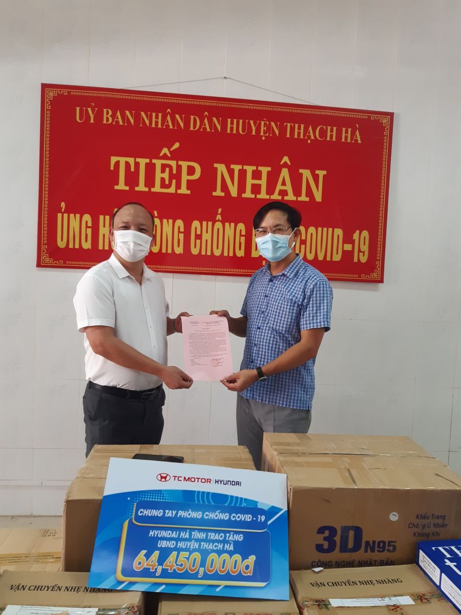 Nhằm kịp thời hỗ trợ cho các địa bàn có dịch bệnh, Hyundai Hà Tĩnh trao tặng các phần thiết bị thiết yếu y tế cho Ủy Ban Nhân Dân Huyện Thạch Hà như Sau :