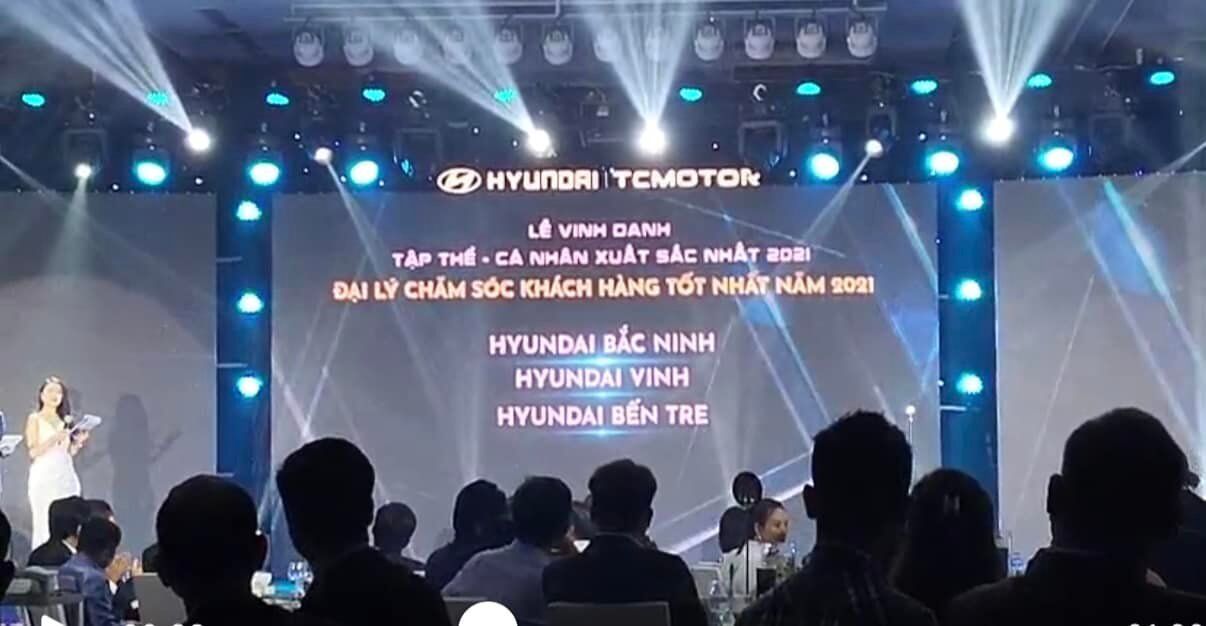 Đặc biệt, ngày 28/4/2022, TC Motor Việt Nam đã tổ chức lễ tổng kết năm với 70 đại lý trên khắp mọi miền tổ quốc. Lần đầu tiên trong lịch sử Hyundai Vinh giành cú đúp danh hiệu cao quý: Đại lý xuất sắc toàn diện năm 2021. Tại buổi tổng kết, Hyundai Vinh đã vinh dự được bình chọn vào top 3 trong các hạng mục đề cử xuất sắc nhất: