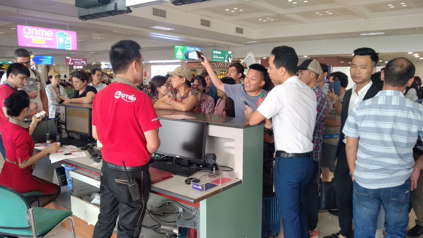 Khách hàng bức xúc trước quầy làm thủ tục của Vietjet