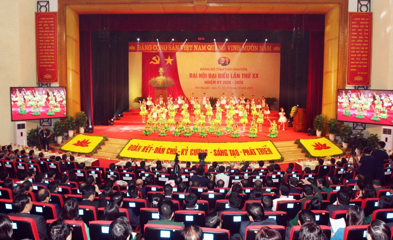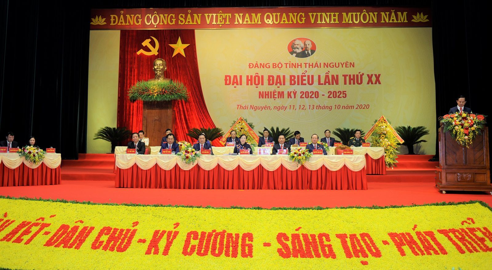 VNHN - Sáng ngày 12/10, tại Trung tâm Văn hoá - Nghệ thuật tỉnh Thái Nguyên, Đảng bộ tỉnh Thái Nguyên đã khai mạc trọng thể Đại hội đại biểu lần thứ XX, nhiệm kỳ 2020-2025. Đại hội có chủ đề “Tăng cường xây dựng, chỉnh đốn Đảng và hệ thống chính trị trong sạch, vững mạnh, tinh gọn, hiệu lực, hiệu quả; đảm bảo quốc phòng, an ninh; huy động, sử dụng hiệu quả các nguồn lực, nâng cao toàn diện đời sống nhân dân các dân tộc trong tỉnh; xây dựng Thái Nguyên trở thành một trong những trung tâm kinh tế công nghiệp hiện đại của khu vực trung du, miền núi phía Bắc và vùng thủ đô Hà Nội vào năm 2030”.