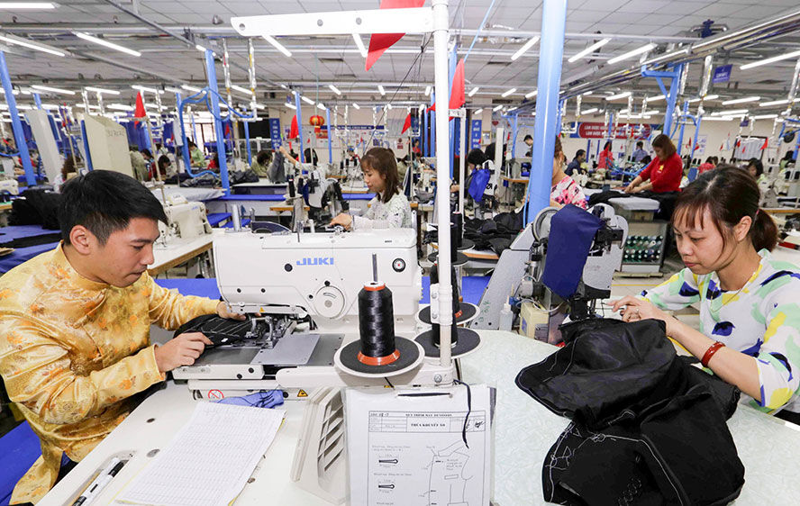 Hiệp định EVFTA sẽ tạo thêm 146.000 vị trí việc làm tại Việt Nam mỗi năm, tập trung vào các ngành như dệt may, da giày. May hàng xuất khẩu sang thị trường châu Âu tại Tổng công ty May 10 (Sài Đồng, quận Long Biên). Ảnh : hanoimoi.com.vn
