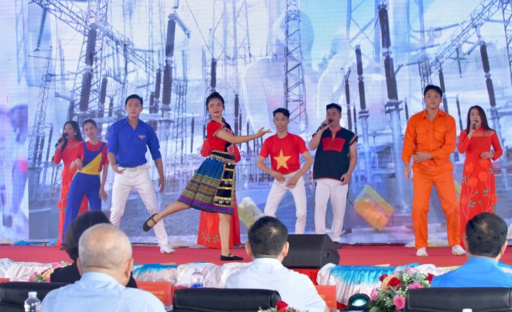 Văn nghệ biểu diễn tại Lễ phát động Đợt thi đua cao điểm “500 ngày đêm hoàn thành 3.000km đường cao tốc” tại hiện trường Dự án đường cao tốc Khánh Hòa-Buôn Ma Thuột. Ảnh: NDO