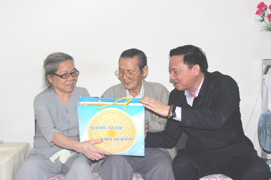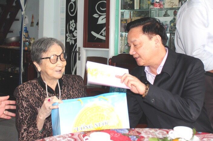 Ông Nguyễn Khắc Định thăm, chúc Tết gia đình ông Trần Định. Nguồn ảnh: (Baokhanhhoa.vn )