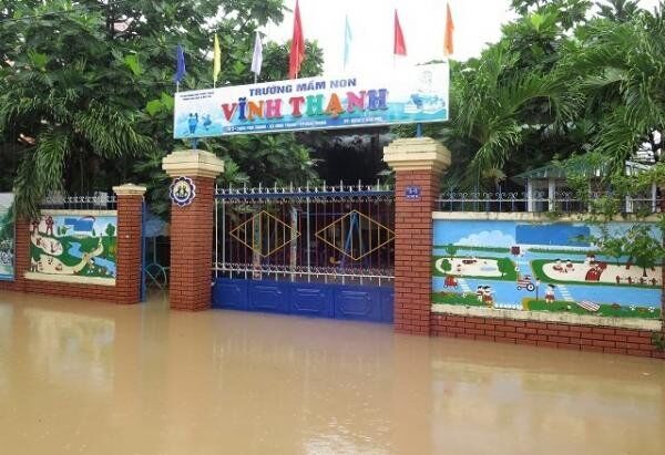 Trường Mầm non Vĩnh Thạnh tại thành phố Nha Trang bị ngập trong biển nước.