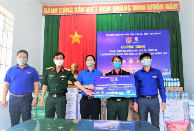 VNHN - Ngày 8/4, Ban thường vụ Tỉnh đoàn Khánh Hoà đã tổ chức thăm, trao tặng quà hơn 500 triệu đồng hỗ trợ các khu cách ly tập trung của Bộ chỉ huy Quân sự tỉnh Khánh Hòa.
