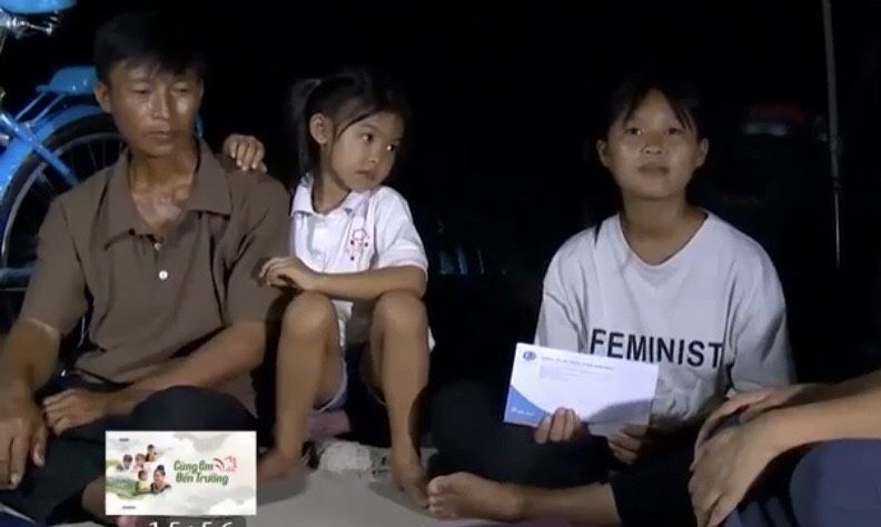 Được sự đồng ý, giúp đỡ và tạo điều kiện từ chính quyền địa phương, chúng tôi đến trao phần quà từ Quỹ tấm lòng Việt của Đài Truyền hình Việt Nam cho một em học sinh có hoàn cảnh khó khăn nhất làng. Lắng nghe câu chuyện thương đau của người đàn ông mới gần 40 tuổi sống trong cảnh “gà trống nuôi con”, vợ anh mất do tai nạn đuối nước trên sông khi đánh bắt cá, để lại cho anh tài sản vô giá là 4 đứa trẻ, khi ấy đứa nhỏ nhất mới có 2 tuổi. Người đàn ông với nước da đen, mặt mòi cùng sương gió, có những ngày làm không đủ nuôi các con, cố gắng cho các con được đến trường đi học như bao bè bạn cùng trang lứa. Dù câu chuyện cũng đã xảy ra được mấy năm rồi, nhưng khi nghĩ lại đôi mắt người chồng, người cha ấy vẫn để lại ngấn lệ, dường như nỗi đau chưa bao giờ được nguôi ngoai như vừa mới diễn ra vậy. Những đứa trẻ mong ước hàng ngày có một nơi gọi là “nhà” để lập bàn thờ cho mẹ, để có chỗ trú nắng trú mưa, có một không gian học tập để xây dựng tương lai và mơ ước, những điều tưởng chừng như giản đơn mà vô vọng… Đó chỉ là một trong số rất nhiều hoàn cảnh khó khăn đang sinh sống tại đó nhưng cũng đủ để khiến chúng tôi nghẹn lại, xót xa.