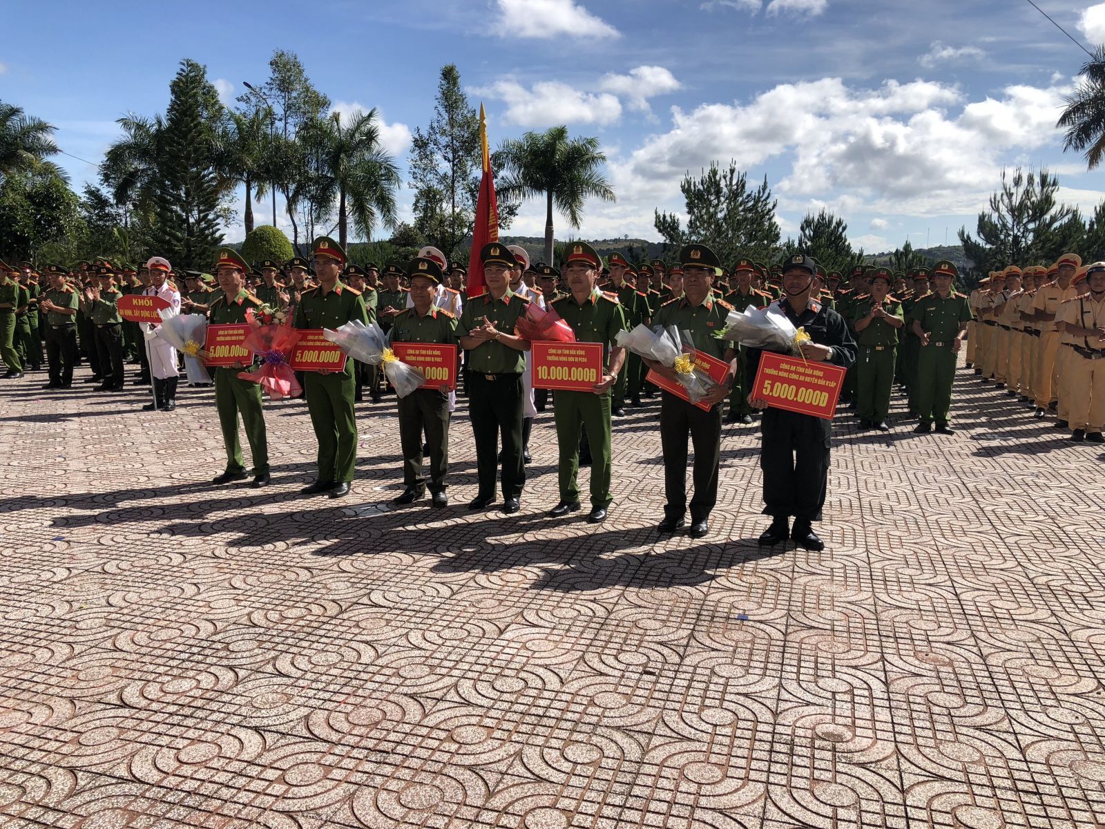 Cũng nhân dịp này, Đại tá Hồ Văn Mười – Giám đốc Công an tỉnh Đắk Nông cũng trao thưởng cho các phòng, ban đơn vị đã có thích tích xuất sắc trong phá án.