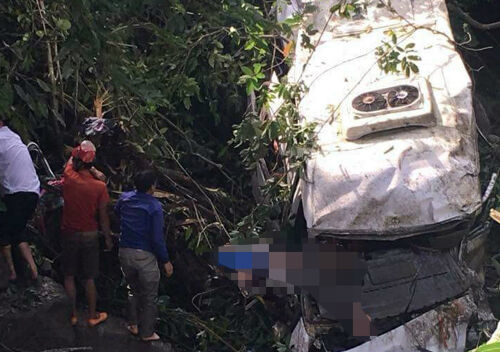 Sau vụ va chạm, cả hai phương tiện rơi xuống suối dưới cầu bản Tiên Bình, khiến 13 người tử vong, 3 nạn nhân khác bị thương.