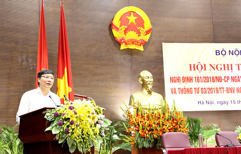 Dự và phát biểu tại hội nghị, Bộ trưởng Bộ Nội vụ Lê Vĩnh Tân cho biết, Nghị định 161/2018/NĐ-CP đã có hiệu lực thi hành và đã được các bộ, ngành, địa phương nghiêm túc triển khai thực hiện. Để tiếp tục triển khai có hiệu quả, đồng bộ, thống nhất, bên cạnh những giải pháp cải cách hành chính, cải cách thủ tục hành chính, cần tăng cường trao đổi, tập huấn để kịp thời giải quyết khó khăn, vướng mắc phát sinh khi áp dụng văn bản quy phạm pháp luật.