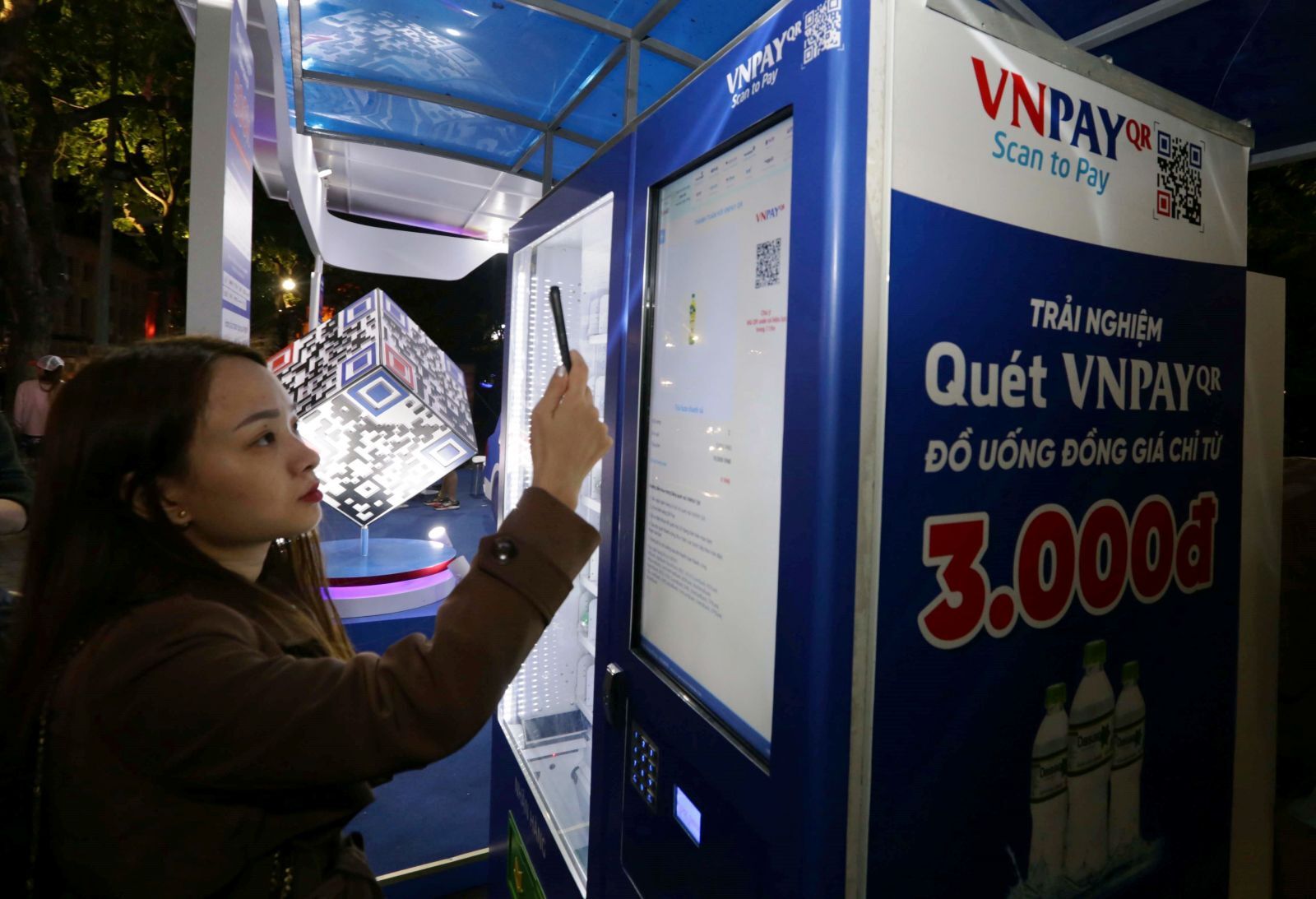 Khách hàng thử nghiệm quét mã khi mua hàng trực tuyến tại lễ kích hoạt ngày mua sắm trực tuyến và khai mạc Tuần lễ trải nghiệm thương mại điện tử và công nghệ số do Bộ Công Thương phối hợp cùng các thành phố Hà Nội, Đà Nẵng, Thành phố Hồ Chí Minh tổ chức_Ảnh: TTXVN