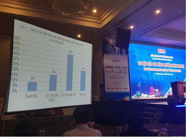 Theo kết quả thăm dò tại hội thảo, có tới 46% khách mời tin rằng GDP của Việt Nam sẽ đạt tăng trưởng từ 6,5-7% trong năm nay; 27% tin vào mức tăng trưởng trên 7%; 18% cho rằng nền kinh tế sẽ tăng từ 6-6,5%. Trong khi đó, chỉ 9% tin vào mức tăng trưởng dưới 6%.
