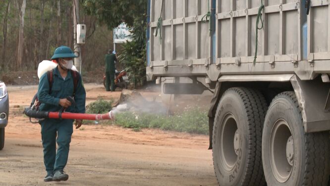 Phun thuốc các phương tiện ra vào cửa ngõ tỉnh Kon Tum