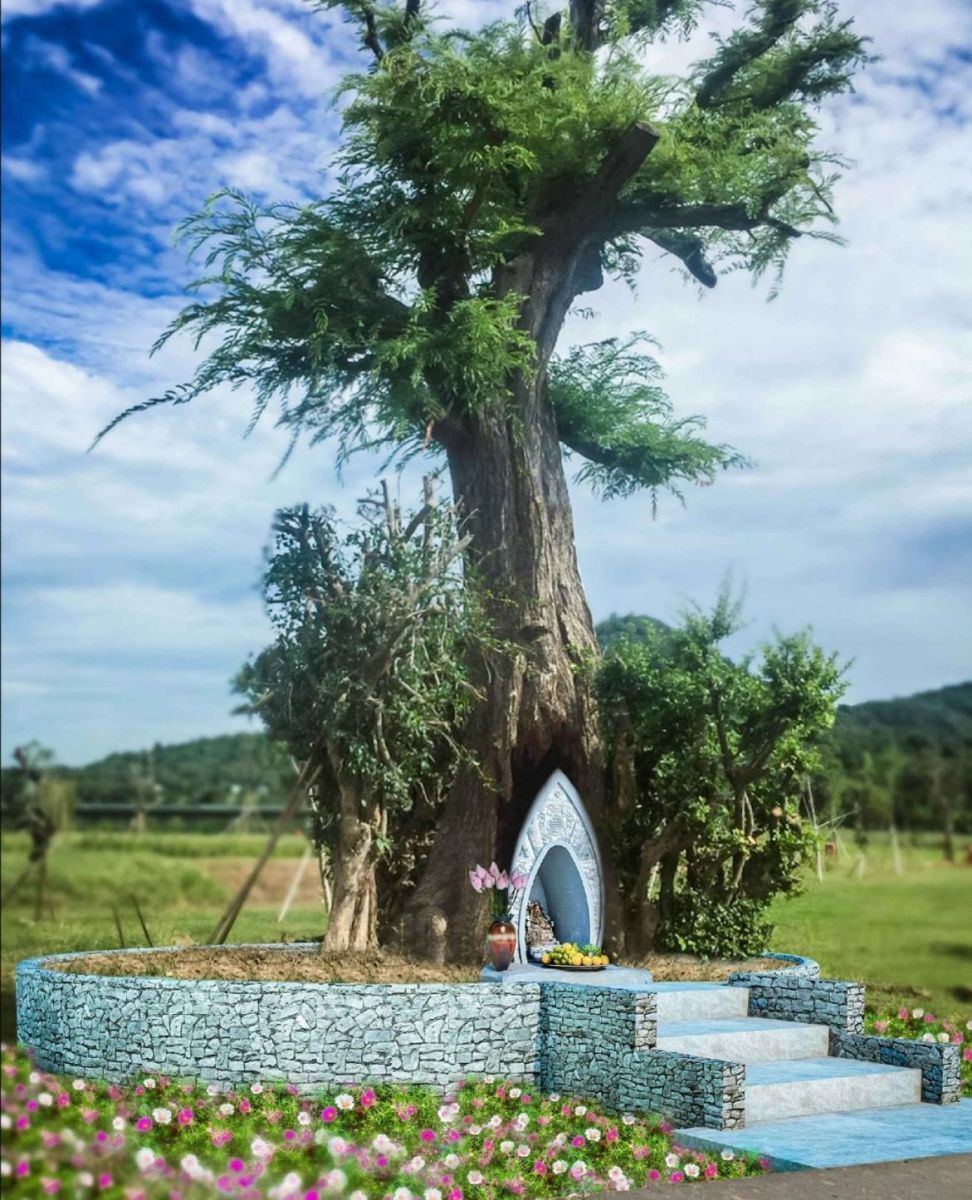 Thế giới tâm linh là thế giới của sự thiêng liêng, mà ở đó chỉ có những gì cao cả, lương thiện và đẹp đẽ mới có thể vươn tới. Xuất phát từ đức tin ấy, nhà đầu tư luôn biết cách trân trọng nguồn năng lượng tâm linh qua việc tạc lại những điều kỳ ngộ thuở trước bằng biểu tượng mang nét tôn giáo truyền thống của dân tộc. Một góc thiêng nơi khu du lịch điện mặt trời như ghi nhớ đến “công ơn” phù hộ của cặp rắn thần, đến thổ địa sơn thần của vùng Bảy Núi đối với sự thành công của kỳ quan nhân tạo ngày hôm nay. Gốc me nghìn tuổi bệ vệ đứng như minh chứng cho tiềm năng của điện mặt trời Sao Mai trường kỷ lớn mạnh.