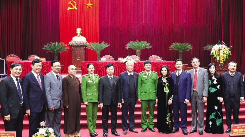 Các đồng chí: Nguyễn Hương Giang, Phó Bí thư Tỉnh ủy, Chủ tịch UBND tỉnh; Nguyễn Hạnh Chung, Phó Chủ tịch HĐND tỉnh với các đại biểu tại Kỳ họp.