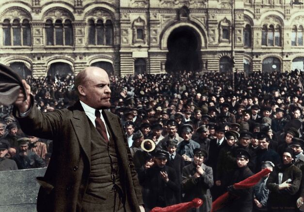 Lãnh tụ vô sản Lênin phát biểu trước quần chúng Nga. Ảnh: RBTH