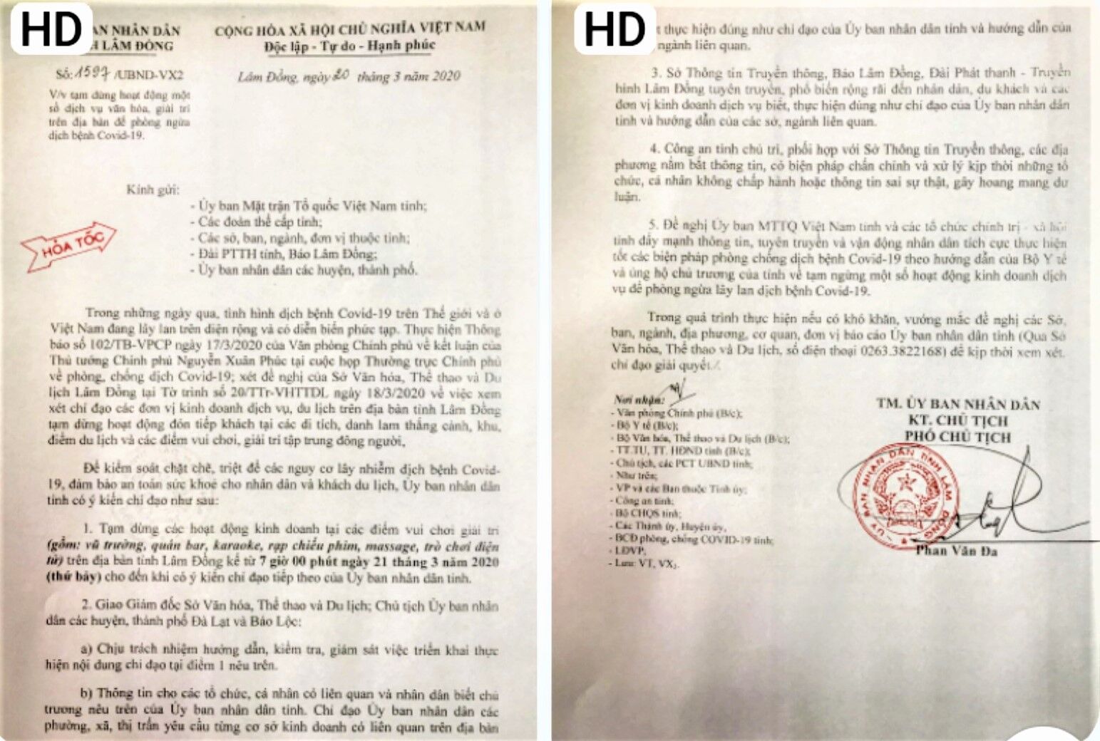 Công văn hỏa tốc số 1597/ UBND-VX2, gửi các đơn vị liên quan về việc tạm dừng một số dịch vụ văn hóa.
