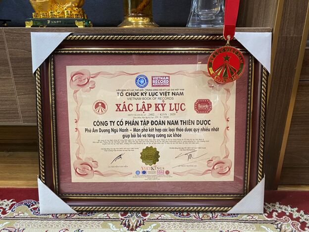 Mới đây, Tổ chức kỷ lục Việt Nam đã xác lập kỷ lục “Phở âm dương ngũ hành – Món phở kết hợp các loại thảo dược quý giúp bồi bổ và tăng cường sức khỏe”. Được biết thương hiệu Phở âm dương ngũ hành trực thuộc Công ty cổ phần tập đoàn Nam Thiên Dược quản lý. Thời gian tới chuỗi hệ thống “Phở âm dương ngũ hành” sẽ được triển khai thêm tại Hà Nội và một số thành phố nhằm đáp ứng nhu cầu cộng đồng. Theo đánh giá của các nhà chuyên môn thì Phở dược liệu này rất tốt cho sức khỏe, nâng cao thể trạng, nhất là trong đại dịch Sars-CoV-2 chưa biết đến khi nào mới khống chế được.