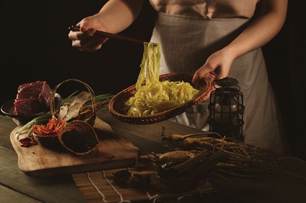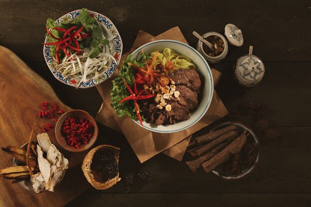 Phở trộn âm dương ngũ hành là sự hòa quyện độc đáo giữa sợi phở tươi truyền thống được tẩm ướp cầu kỳ tinh chất của 10 vị dược liệu quý, tạo nên sợi phở với màu sắc đặc biệt chưa từng có mà vẫn giữ được hương vị phở thơm ngon mang lại nhiều công dụng tuyệt vời cho sức khỏe.