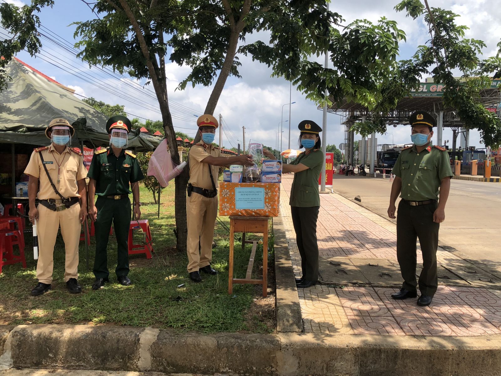 Hội Phụ nữ Công an tỉnh Đắk Nông tặng quà cho các lực lượng tuyến đầu phòng, chống dịch tại điểm chốt cửa ngõ nam Tây nguyên.