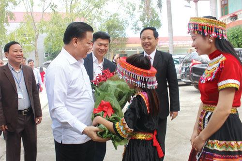 Các cháu thiếu nhi dân tộc ở huyện Chi Lăng (Lạng Sơn) tặng hoa chúc mừng Bộ trưởng nhân chuyến thăm và làm việc của ông