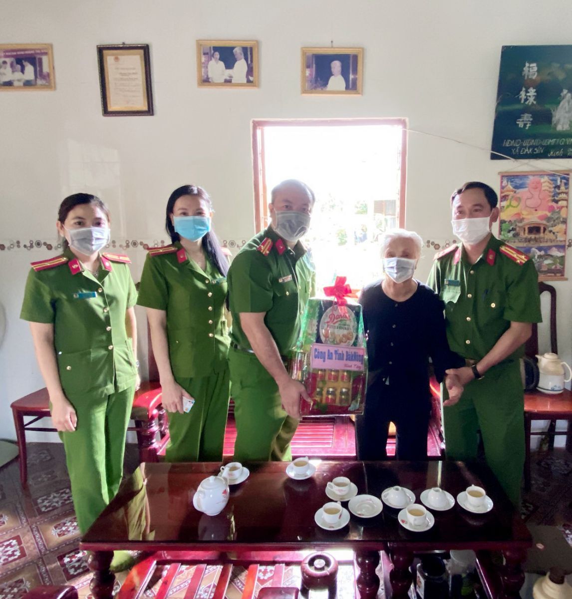 Thay mặt Đảng uỷ, lãnh đạo Công an tỉnh, Trung tá Nguyễn Hữu Đức, Phó Giám đốc Công an tỉnh Đắk Nông đã ân cần thăm hỏi và gửi lời chúc mừng sức khoẻ đến 2 Mẹ cũng như bày tỏ lòng biết ơn, tri ân sâu sắc trước những cống hiến, hi sinh, mất mát lớn lao của các Mẹ đối với sự nghiệp đấu tranh giải phóng dân tộc. Đồng thời, đồng chí phó Giám đốc Công an tỉnh cũng đã tận tay trao tặng quà; thẻ CCCD cho Mẹ Việt Nam Anh hùng Hoàng Thị Khiết và Mẹ Việt Nam Anh hùng Bùi Thị Nhung.