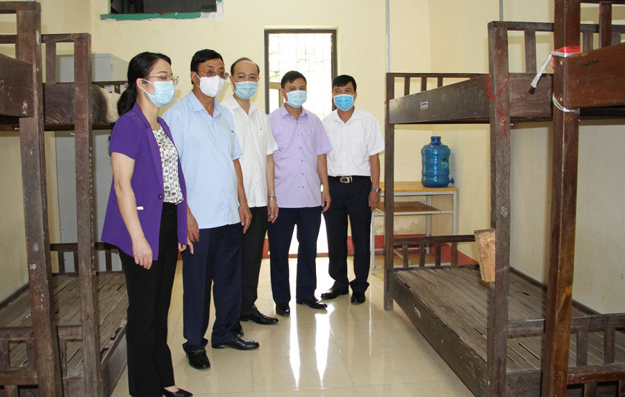 Đồng chí Đặng Xuân Trường, Phó Chủ tịch Thường trực UBND tỉnh và lãnh đạo Sở Y tế kiểm tra khu cách ly tập trung tại Trường Phổ thông dân tộc nội trú Nguyễn Bỉnh Khiêm.