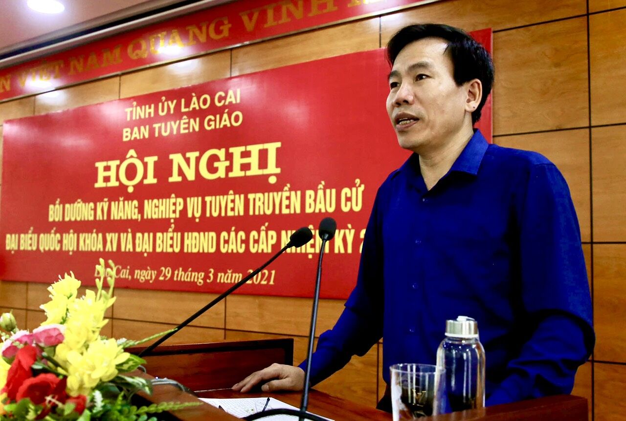 Tại Lào Cai chiều ngày 29/3, Ban Tuyên giáo Tỉnh ủy tổ chức hội nghị bồi dưỡng kỹ năng, nghiệp vụ tuyên truyền bầu cử đại biểu Quốc hội khóa XV và đại biểu HĐND các cấp nhiệm kỳ 2021 – 2026. Chủ trì hội nghị có đồng chí Dương Đức Huy, Ủy viên Ban Thường vụ, Trưởng Ban Tuyên giáo Tỉnh ủy, Trưởng Tiểu ban Thông tin Tuyên truyền; lãnh đạo Ban Tuyên giáo Tỉnh ủy, Ủy ban MTTQ Việt Nam tỉnh; đội ngũ báo cáo viên cấp tỉnh; ban tuyên giáo các đảng bộ trực thuộc Tỉnh ủy; trung tâm chính trị các huyện, thị, thành phố; các đồng chí làm công tác tuyên truyền, cơ quan báo chí địa phương, các cơ quan báo chí trung ương thường trú tại tỉnh và các văn nghệ sỹ trong tỉnh.