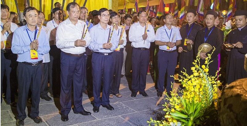 22h lãnh đạo tỉnh Hải Dương dâng hương tại đền trước khi lễ Khai ấn chính thức diễn ra.