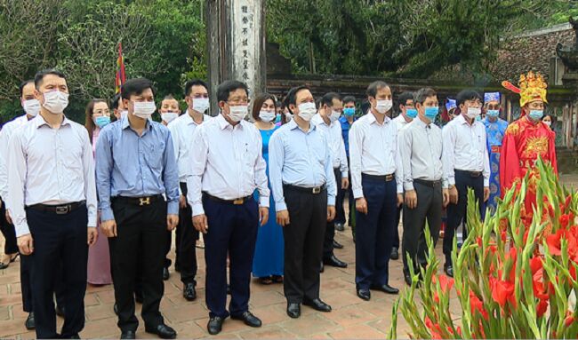 Sau lễ mở cửa đền, đồng chí Chủ tịch UBND tỉnh và các đại biểu thực hiện nghi thức dâng hương tại Nhà bia thờ Vua Lý Thái Tổ tại Khu di tích Quốc gia đặc biệt Cố đô Hoa Lư.