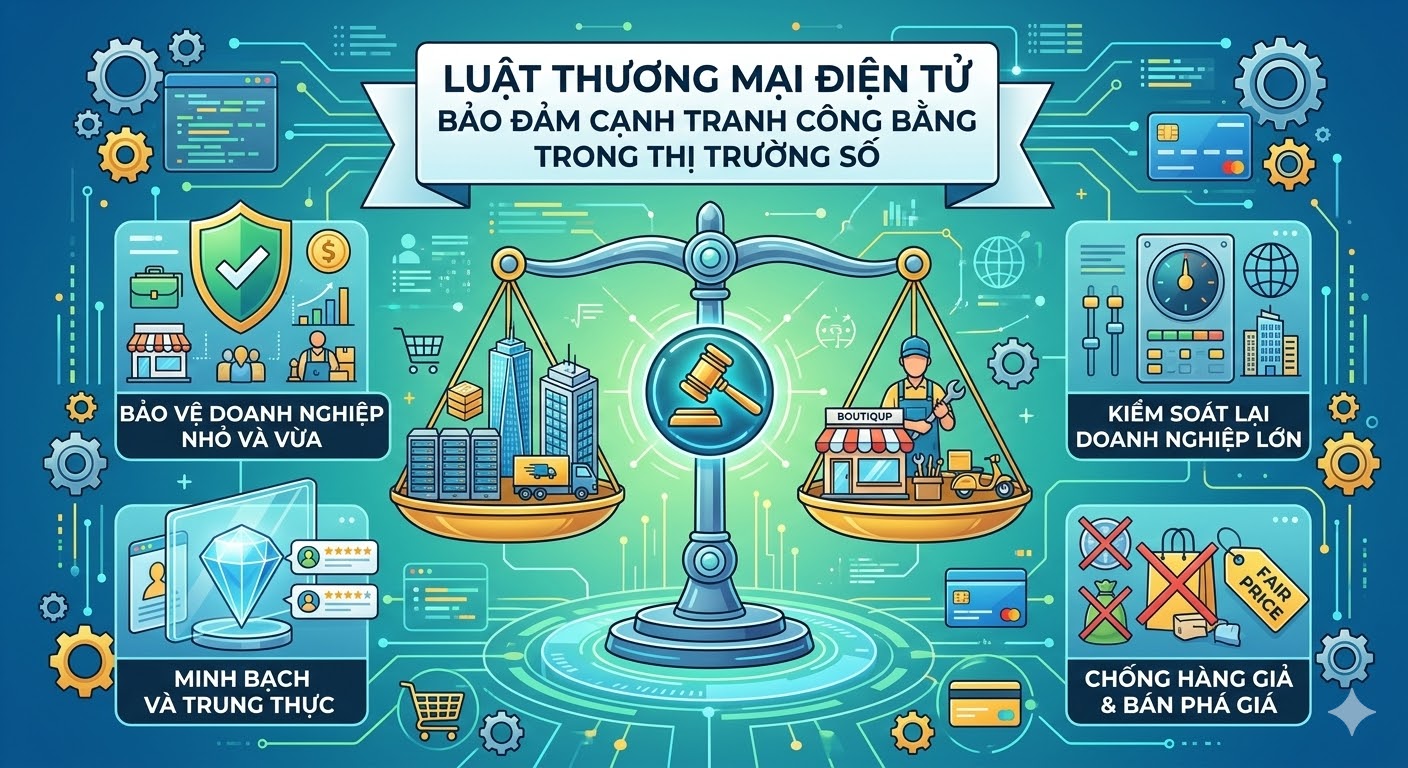 Sự phát triển mạnh mẽ của công nghệ số đã thúc đẩy thương mại điện tử trở thành một trong những lĩnh vực kinh tế năng động nhất hiện nay. Bên cạnh những lợi ích to lớn như mở rộng thị trường, giảm chi phí giao dịch và tăng tính tiện lợi cho người tiêu dùng, thương mại điện tử cũng làm nảy sinh nhiều vấn đề cạnh tranh phức tạp. Trong bối cảnh đó, Luật Thương mại điện tử giữ vai trò quan trọng trong việc điều chỉnh, bảo đảm môi trường cạnh tranh lành mạnh và công bằng.