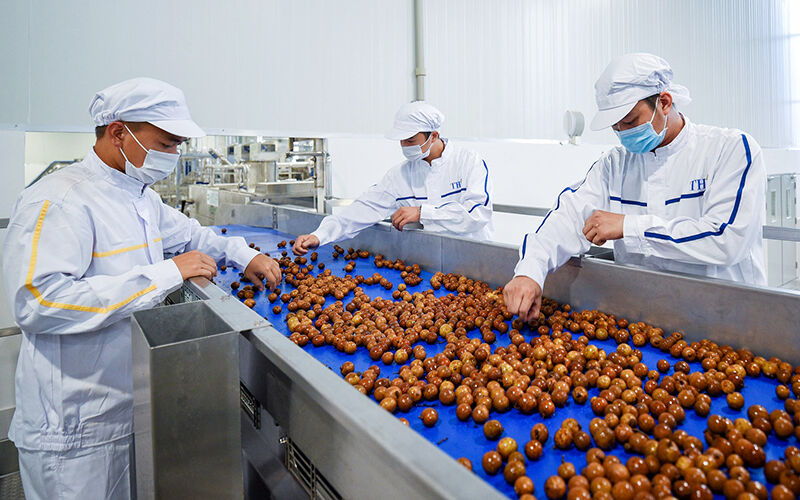 Sơ chế sản phẩm nhãn tại Nhà máy chế biến hoa quả tươi và thảo dược Vân Hồ, tỉnh Sơn La. Ảnh: ÐINH TÙNG