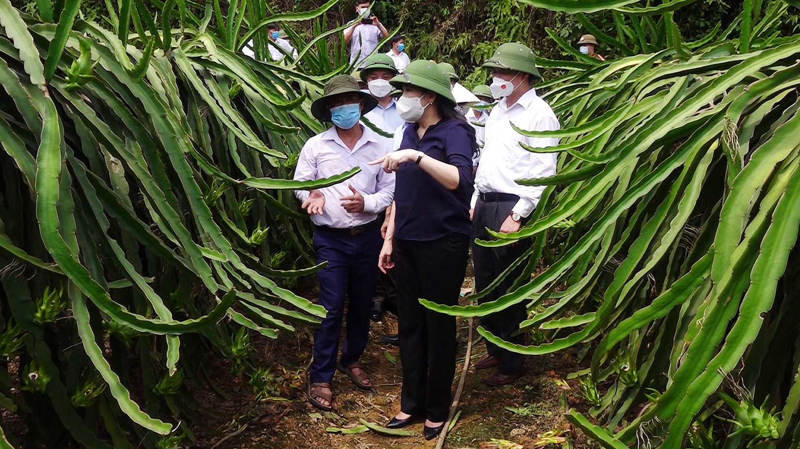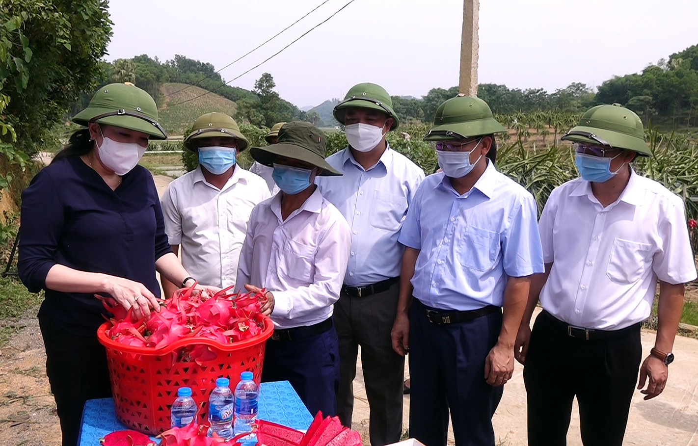 Tại đây, đồng chí Bí thư Tỉnh ủy đã tới thăm tình hình sản xuất, tiêu thụ thanh long của ông Trịnh Quang Định và Trịnh Quang Thành. Đây là 2 trong số 3 hộ Nông dân của xóm Thanh Thế trồng thanh long với tổng diện tích là 10 sào. Sản lượng bình quân đạt 200 đến 250kg/sào/lứa với khoảng 3 đến 4 lứa/năm. Phần lớn sản lượng thanh long được bà con bán lẻ tại các chợ địa phương với giá trung bình từ 15 đến 20 nghìn đồng/kg.