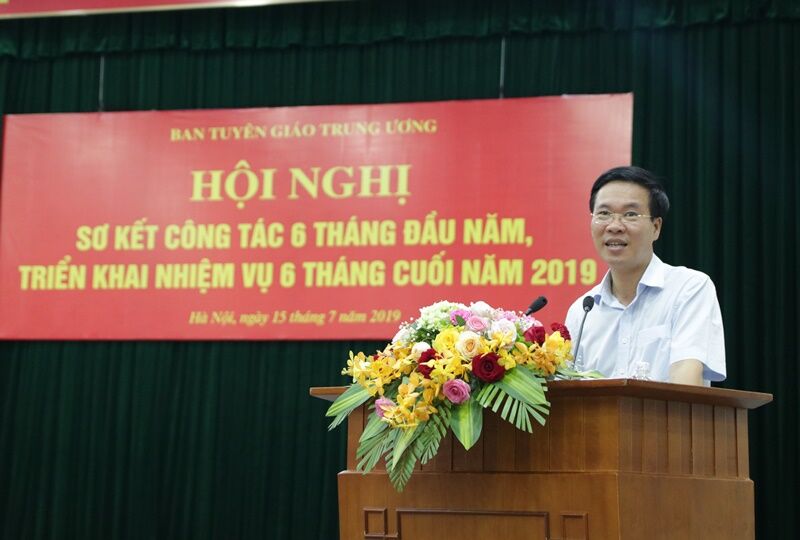 VNHN- Đó là nhấn mạnh của đồng chí Võ Văn Thưởng, Ủy viên Bộ Chính trị, Bí thư Trung ương Đảng, Trưởng ban Tuyên giáo Trung ương trong phát biểu chỉ đạo tại Hội nghị sơ kết công tác 6 tháng đầu năm, triển khai nhiệm vụ 6 tháng cuối năm 2019 do Ban Tuyên giáo Trung ương tổ chức chiều ngày 15-7.