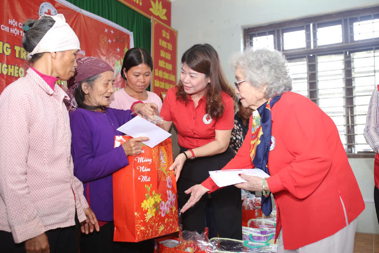Hội Chữ thập đỏ thành phố Hà Nội tặng quà Tết Nguyên đán Canh Tý cho người nghèo tại huyện Ứng Hòa.