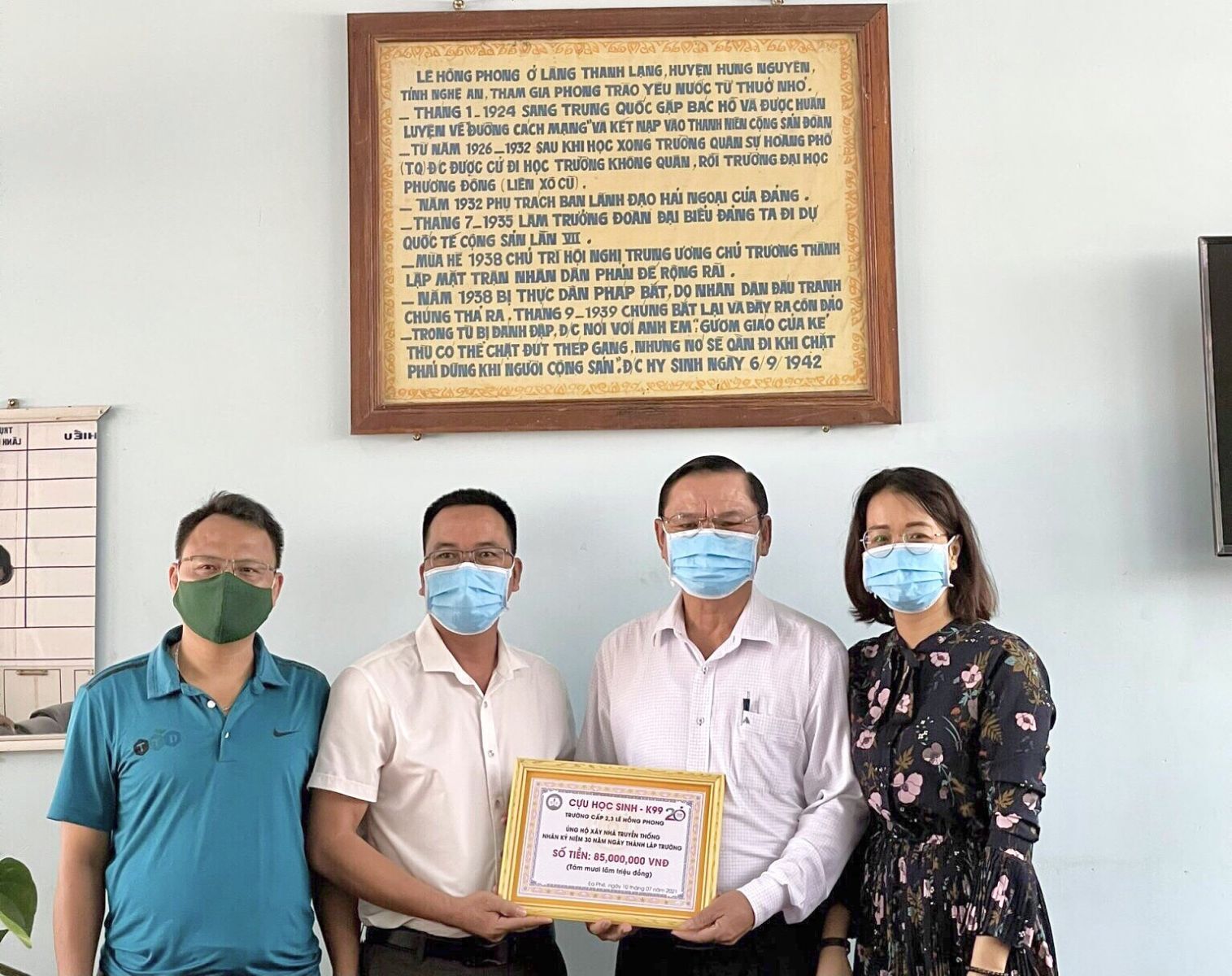 Với mong ước được tri ân Thầy Cô và mái trường mến yêu sau nhiều năm ra trường, với tình cảm và tấm lòng của mình, các cựu học sinh K99 đã trở về thăm lại mái trường xưa. Ban Đại diện cựu học sinh cấp 2-3 trường THPT Lê Hồng Phong đã ghé thăm và trao 110 triệu đồng cho Ban Giám hiệu Nhà trường để ủng hộ xây dựng Nhà truyền thống nhân dịp Kỷ niệm 30 năm ngày thành lập trường.