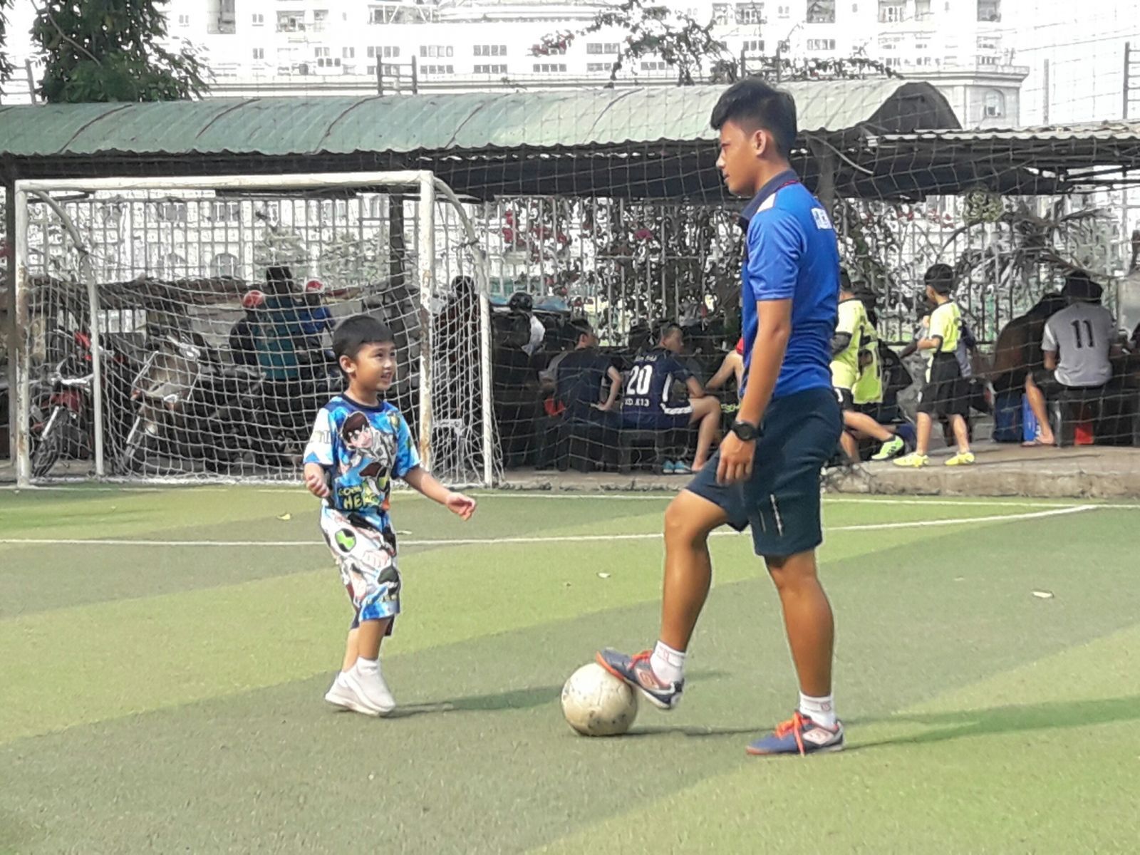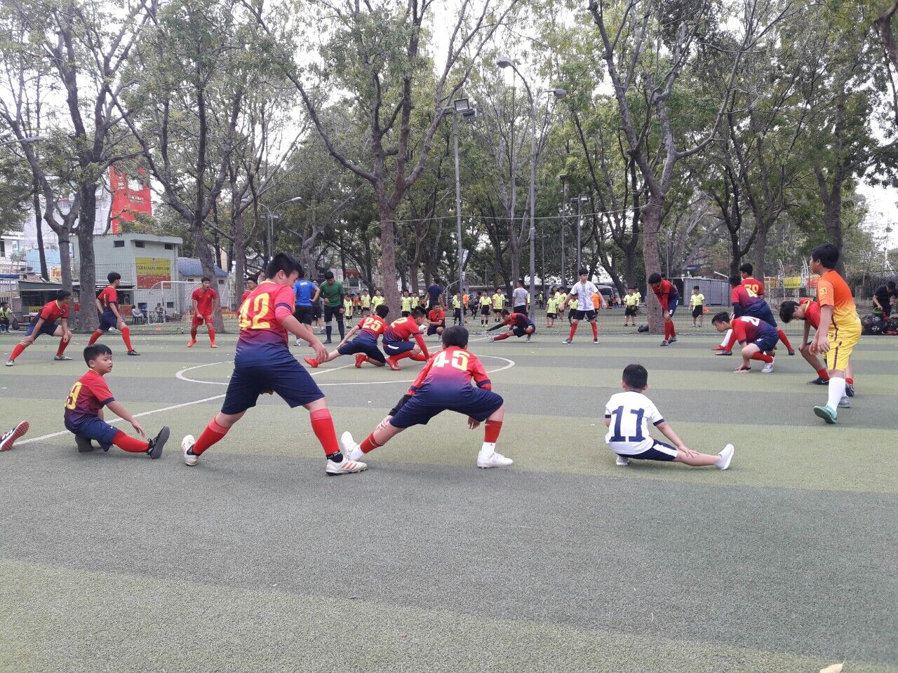 Các cầu thủ nhí đang hăng say luyện tập trên sân cỏ